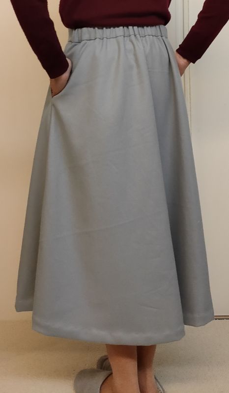 162cmでMサイズを購入しました。生地が微妙に足りなかったので丈を3cm短くしましたが、柄が大きなチェック柄のせいか、結果すっきりときれいに着ることができました。フレアの形がとてもキレイです!後ろゴムで楽チン&ポケット付きというのも個人的にかなり大事!洋裁初心者ですが、縫うのは一日でできました。裏地のパターンも購入したので、色々生地を変えてまた作りたいです。