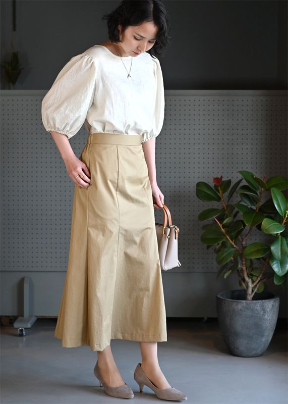 程よいフィット感があるマーメイドスカートと合わせるとスタイルアップも叶えつつ大人ぽい印象で着こなせます。