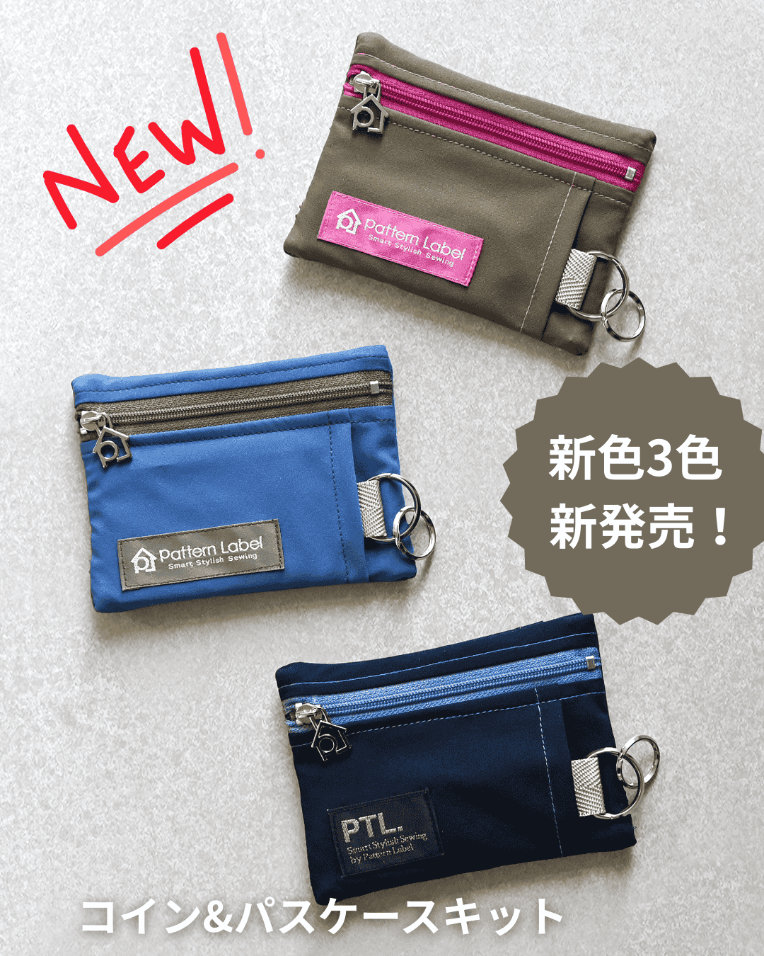 新発売のカラフルなファスナーと手芸店では手に入らない高品質なアパレルファブリックの布地キット。コイン&パスケースを一つ作れる材料がセットになっています。