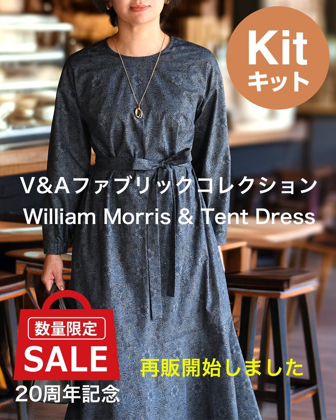 英国ヴィクトリア・アンド・アルバート博物館(V&A)が所蔵しているウィリアム・モリスによる壁紙やテキスタイルのデザインから、インスピレーションを得て作られた生地で作る「テントドレス」が作れる特別な布地キットです。
