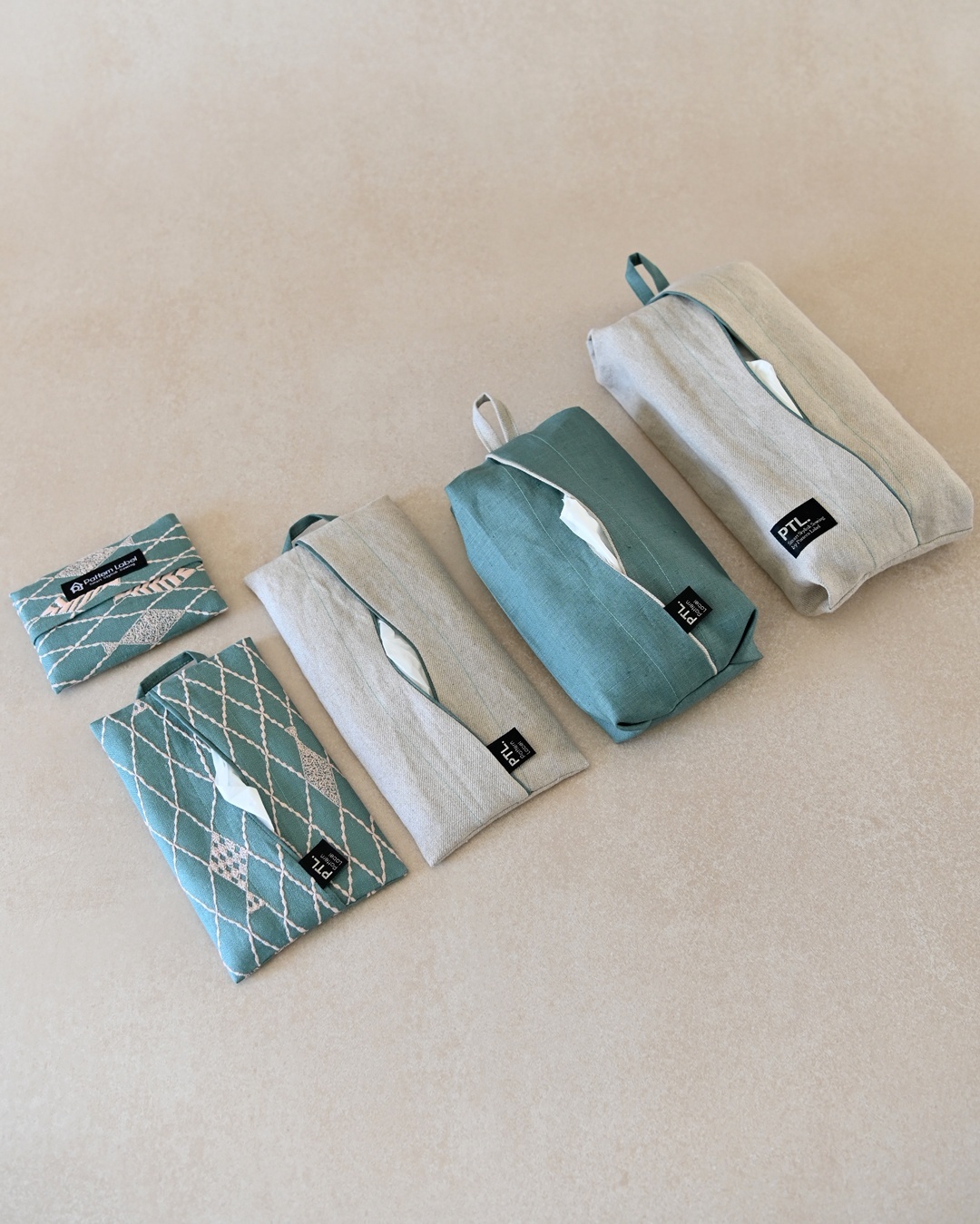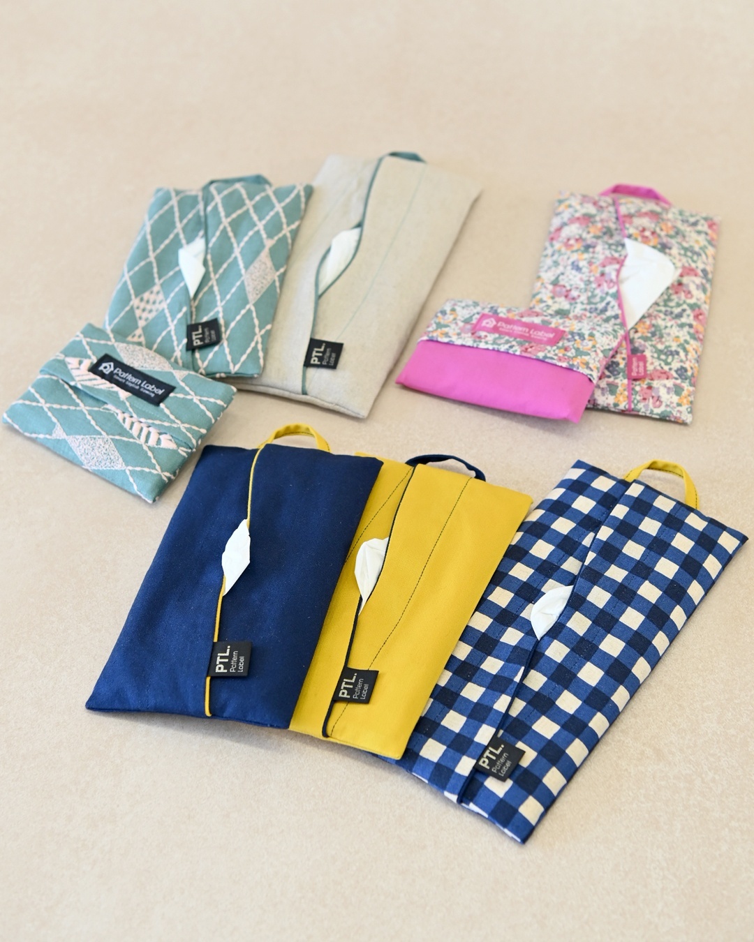 パターンレーベルには、4種類のテッシュカバーの型紙がございます。お使いのシーンに合わせて作ることも可能です。お家の雰囲気にあわせて布地を選ぶのも楽しい時間です。