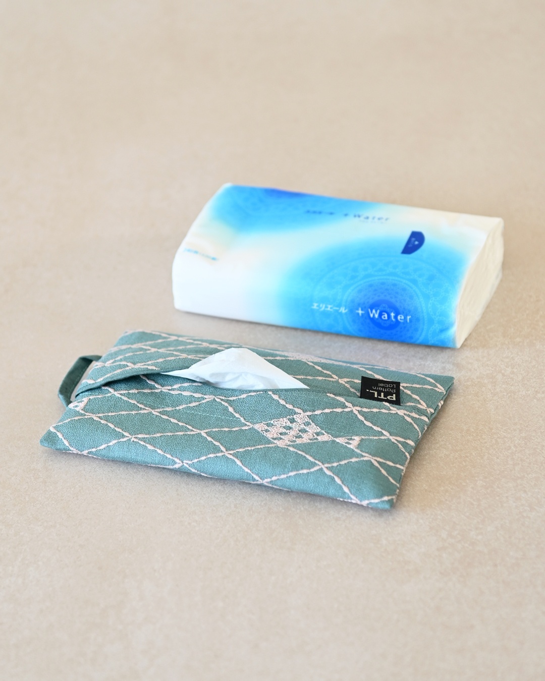 持ち運ぶときはティッシュを中にしまって、使うときは出したままで。見た目も美しいカバーの型紙です。